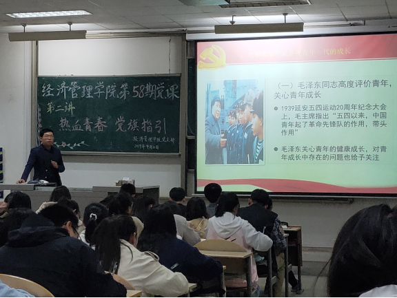 為了加強(qiáng)對(duì)入黨積極分子的培訓(xùn)工作,進(jìn)一步提高入黨積極分子的黨的思想素養(yǎng),經(jīng)濟(jì)管理學(xué)院第五十八期黨課培訓(xùn)第二講在教2-111順利開(kāi)講,主講人候劍波老師對(duì)黨課學(xué)員們進(jìn)行了指導(dǎo)與培訓(xùn)。