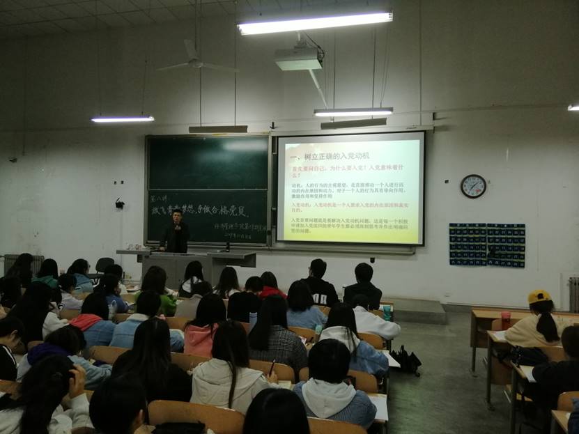 趙偉奇老師首先從樹立正確的入黨動機(jī)、自覺接受黨組織的培養(yǎng)、嚴(yán)格遵守入黨程序,以實際行動做一名合格黨員這四個方面講解了本節(jié)黨課的內(nèi)容。趙老師指出:思想上的問題是最重要的問題,樹立正確的入黨動機(jī)十分重要,要樹立正確的入黨動機(jī),否則將辜負(fù)自己,辜負(fù)人民。隨后,趙老師詳細(xì)闡述了學(xué)生常見的入黨動機(jī),得出總結(jié):正確的入黨動機(jī)是獻(xiàn)身共產(chǎn)主義事業(yè),更好的為人民服務(wù)。此外,趙老師還強(qiáng)調(diào)同學(xué)們應(yīng)正確對待黨組織的考察。考察不是一時的考察,而是終身的考察,入黨積極分子應(yīng)當(dāng)時刻嚴(yán)格要求自己,不斷地向黨組織靠攏。最后趙老師提到,學(xué)生的首要任務(wù)是學(xué)習(xí),但同時也要積極參與課外活動,從日常小事做起,如考試不作弊,不與同學(xué)們發(fā)生沖突,尊敬長輩,團(tuán)結(jié)同學(xué)等,同學(xué)們認(rèn)真思考積極討論,在熱烈的掌聲中結(jié)束了本節(jié)課的學(xué)習(xí)。