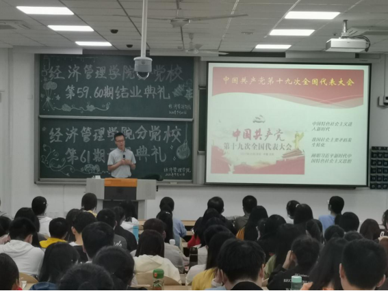 9月21日晚20點(diǎn),經(jīng)濟(jì)管理學(xué)院第61期黨課培訓(xùn)第一講“學(xué)習(xí)黨的歷史,銘記黨的光輝”在教1-101教室順利開講,經(jīng)濟(jì)管理學(xué)院黨委副書記程新峰老師為180余名黨課學(xué)員進(jìn)行指導(dǎo)及授課。