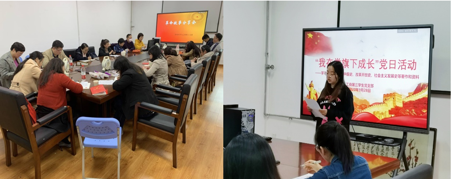 10月5日-10月12日,學(xué)院各黨支部紛紛開(kāi)展了“四史”學(xué)習(xí)教育主題黨日活動(dòng)。管科教師黨支部開(kāi)展“革命故事分享會(huì)”、工商第一學(xué)生黨支部開(kāi)展“閱讀紅色經(jīng)典,傳承紅色精神”讀書分享會(huì),工商第三學(xué)生黨支部開(kāi)展“我在黨旗下成長(zhǎng)”主題黨日活動(dòng),經(jīng)濟(jì)學(xué)生黨支部開(kāi)展“我是黨代表”之“四史”學(xué)習(xí)教育主題黨日活動(dòng),管科學(xué)生黨支部開(kāi)展“學(xué)史明志 堅(jiān)守初心 勇?lián)姑敝黝}黨日活動(dòng)等,各黨支部通過(guò)黨史知識(shí)學(xué)習(xí)、紅色故事分享、紅色經(jīng)典感悟交流,進(jìn)一步深化“四史”學(xué)習(xí)教育成效,不斷增強(qiáng)聽(tīng)黨話、跟黨走的自覺(jué)。