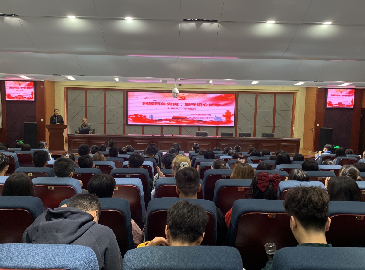 10月12日,經(jīng)濟(jì)管理學(xué)院黨委邀請(qǐng)馬克思主義學(xué)院院長(zhǎng)李曉彤教授為我院200多名師生作了以“回顧百年黨史,堅(jiān)守初心使命”為主題的講座。講座從“政黨萌芽與發(fā)展”、“中國(guó)共產(chǎn)黨的百年歷程”、“百年征程的特點(diǎn)和啟示”、“堅(jiān)守初心擔(dān)當(dāng)新的使命”四個(gè)方面展開(kāi),詳細(xì)闡述了黨的百年征程和重大啟示。