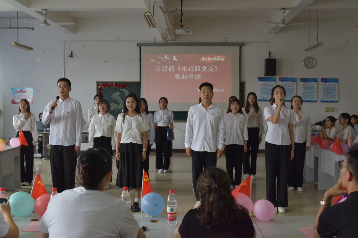 活動(dòng)現(xiàn)場(chǎng),學(xué)院11個(gè)黨支部的代表隊(duì),通過(guò)穿插領(lǐng)唱、合唱、朗誦、舞蹈等形式,唱響主旋律,歌頌改革開(kāi)放以來(lái),在黨的領(lǐng)導(dǎo)下取得的輝煌成就和人民幸福生活。伴隨著熟悉而悠揚(yáng)的旋律,《沒(méi)有共產(chǎn)黨就沒(méi)有新中國(guó)》、《國(guó)家》、《歌唱祖國(guó)》、《燈火里的中國(guó)》等一首首耳熟能詳?shù)慕?jīng)典曲目接連上演,喚醒了崢嶸歲月紅色記憶,抒發(fā)了師生黨員對(duì)黨、對(duì)祖國(guó)、對(duì)社會(huì)主義的熱愛(ài),唱出了對(duì)黨的深厚感情和真摯熱愛(ài)。