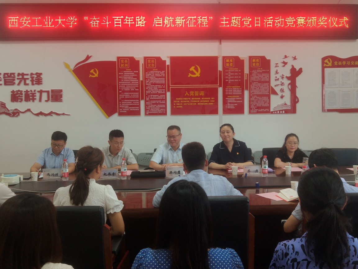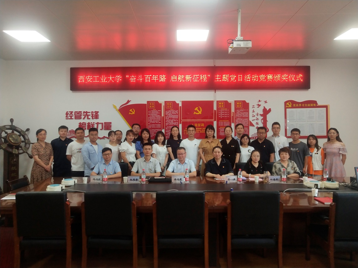 7月14日,西安工業(yè)大學“奮斗百年路 啟航新征程”主題黨日活動競賽頒獎儀式在經(jīng)濟管理學院黨建工作室舉行。黨委組織部常務(wù)副部長梁閃慧、經(jīng)濟管理學院黨政領(lǐng)導和獲獎黨支部代表50余人參加,頒獎儀式由經(jīng)濟管理學院辦公室主任馮川川主持。