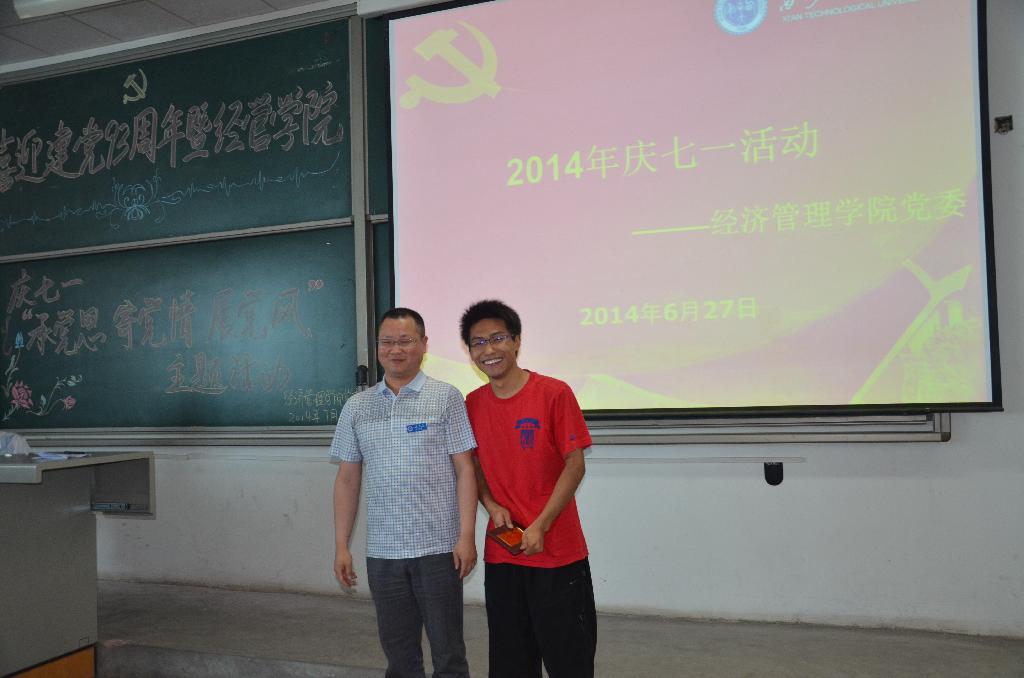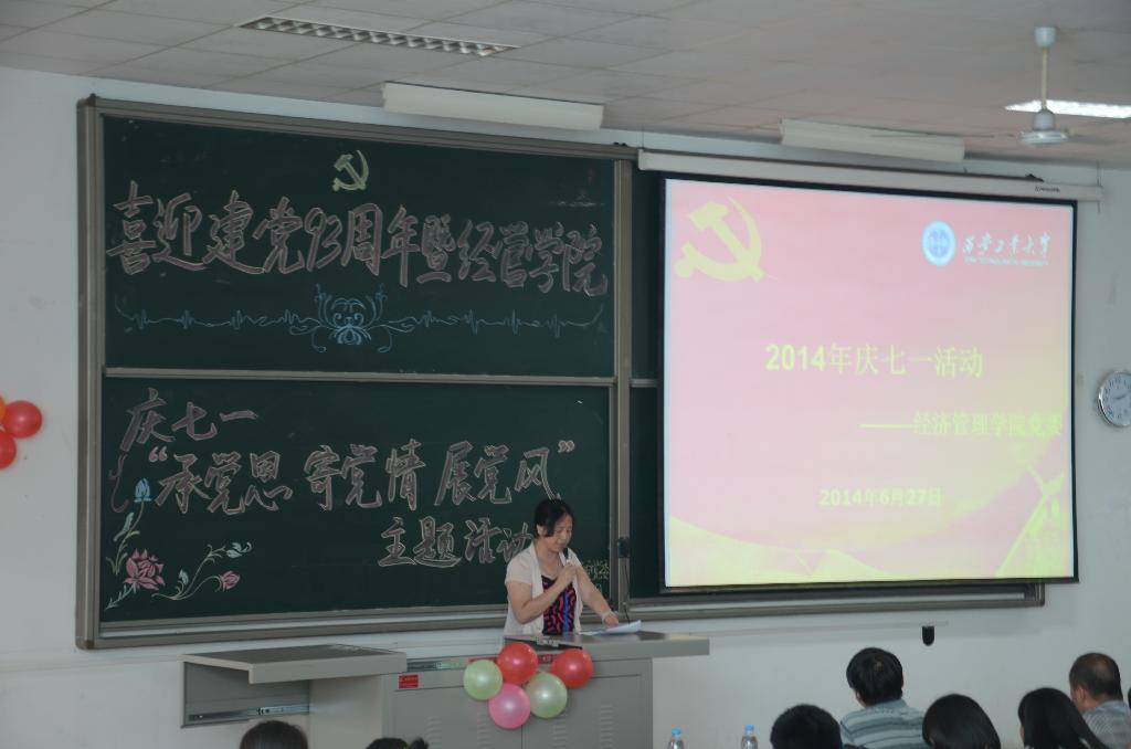 活動(dòng)伊始,由陳燕老師致歡迎辭,對(duì)各位領(lǐng)導(dǎo)和老師、同學(xué)的到來(lái)表示熱烈歡迎。大會(huì)第一項(xiàng)由黨委委員易亮同志領(lǐng)誓,新黨員宣誓老黨員重溫誓詞。第二項(xiàng)由程書(shū)記宣讀獲得校級(jí)、院級(jí)優(yōu)秀黨員的名單,組織部長(zhǎng)劉正利為張曉棠、王育曉、易亮等院優(yōu)秀黨員頒獎(jiǎng)。隨后,由曲書(shū)記致辭,她充分肯定了學(xué)院多年來(lái)取得的顯著工作成績(jī),同時(shí)也提出了對(duì)學(xué)院黨委建設(shè)的建議和希冀。接著分別由教師代表史璇老師匯報(bào)了其所在的工作組的工作情況,并且表達(dá)了其作為一名共產(chǎn)黨員應(yīng)有的奉獻(xiàn)精神;畢業(yè)班學(xué)生黨員王雪梅代表2014級(jí)畢業(yè)生發(fā)出了“今日安全離校、明日廉潔從政”的倡議。最后舉行了學(xué)生支部迎七一“學(xué)黨史、增黨性、送黨恩、跟黨走”演講比賽,熱情洋溢、激情澎湃的演講將活動(dòng)推向高潮。經(jīng)濟(jì)學(xué)生支部最終獲得一等獎(jiǎng),會(huì)計(jì)學(xué)生第一和第三黨支部獲得二等獎(jiǎng),其他支部獲得三等獎(jiǎng)。紀(jì)委副書(shū)記梁閃慧、副院長(zhǎng)宋元梁,院黨委組織委員為他們頒獎(jiǎng)并合影留念。