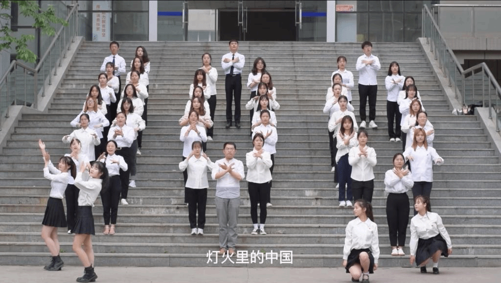 伴隨著《燈火里的中國》音樂響起,活動逐漸拉開了序幕。每位黨員身著白色襯衣、黑色長褲,胸別黨徽,通過舞蹈與手勢舞的結(jié)合在音樂中表達(dá)著對祖國的熱愛之情。為了和支部成員共慶建黨百年華誕,使支部上下團結(jié)一心,在舞蹈中回憶入黨初心,將學(xué)習(xí)教育成果轉(zhuǎn)化為愛國報國的實際行動。本次活動在學(xué)校的圖書館、博苑廣場、教學(xué)樓等多個地方共進行了四次拍攝,通過朗誦、舞蹈、手勢舞的形式舞動青春。最后支部全體黨員于5月20日午12時在教三樓梯完成了活動的最終拍攝,使廣大黨員深入了解了愛國主義的深刻內(nèi)涵與重大意義,自覺肩負(fù)起歷史和時代賦予的神圣使命。
