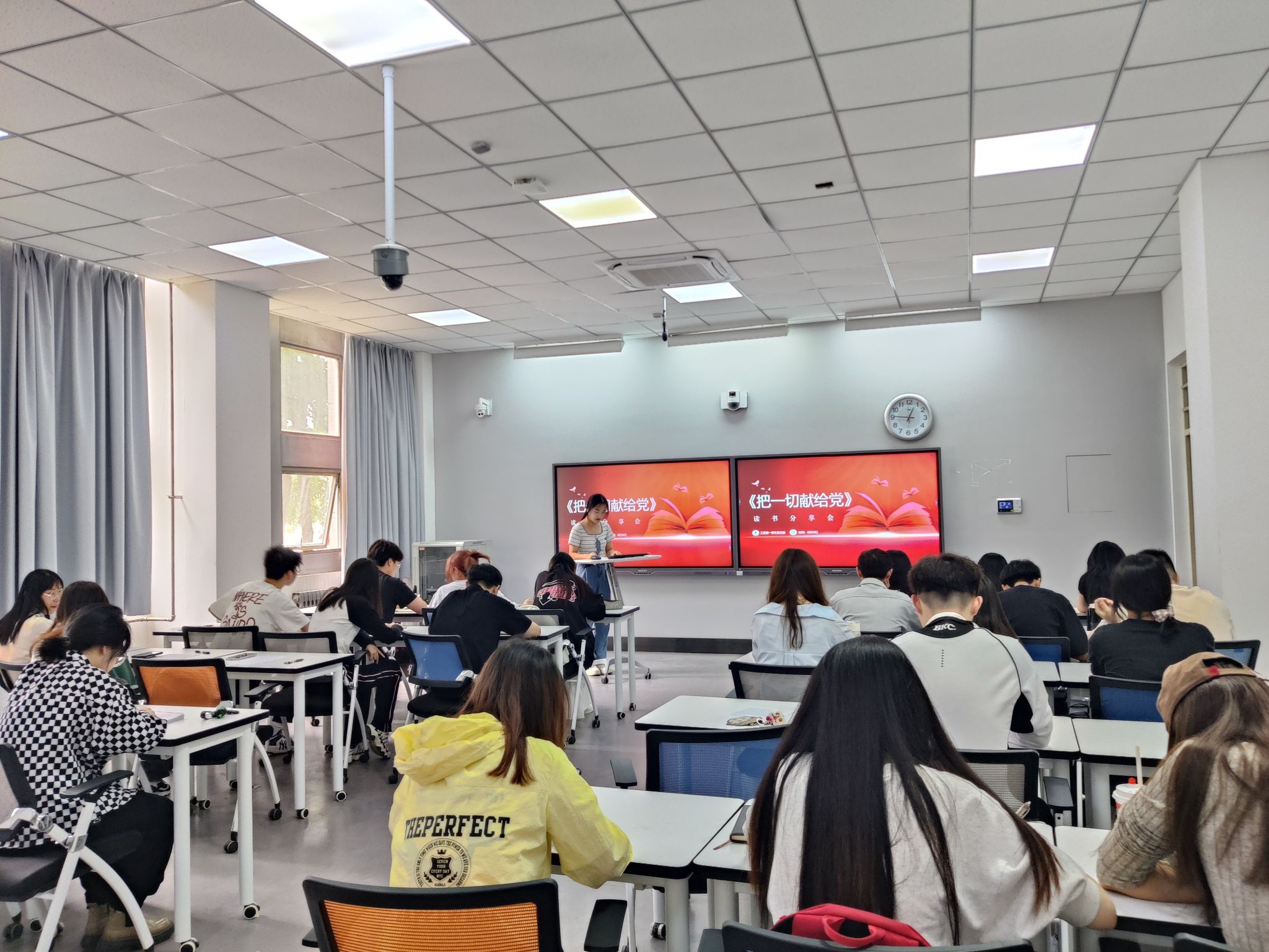 為讓發(fā)展對象們清楚作為一名中共黨員,應(yīng)該認(rèn)識(shí)到自己肩上的責(zé)任與使命。經(jīng)濟(jì)管理學(xué)院工商第一學(xué)生黨支部在4月24日在教3-111開展了此次“把一切獻(xiàn)給黨”讀書分享會(huì),由張雪瑩同學(xué)擔(dān)任主持,工商第一學(xué)生支部全員參加。