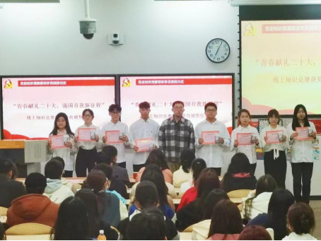 第二項,優(yōu)秀學(xué)員表彰及頒發(fā)證書。由工商第二學(xué)生黨支部書記奚姝美和工商第四學(xué)生黨支部書記石慧敏為獲獎學(xué)員頒獎并合影留念。典禮第三項,黨史線上知識競賽獲獎學(xué)員頒獎儀式。由工商第三學(xué)生黨支部書記侯劍波為獲獎學(xué)員頒發(fā)獎狀和獎品。隨后,優(yōu)秀學(xué)員代表蔡靜上臺發(fā)言。她表示,經(jīng)過黨課班系統(tǒng)的學(xué)習(xí),明確了如何以黨員的標(biāo)準(zhǔn)去嚴(yán)格要求自己,她將做到從思想上入黨,爭取早日成為一個合格的共產(chǎn)黨員。