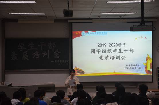 為進一步提高廣大學(xué)生干部的綜合素質(zhì),增強各位同學(xué)的辦公實務(wù)技能,為學(xué)院后續(xù)工作的順利開展打好堅實基礎(chǔ),經(jīng)濟管理學(xué)院于2019年11月11日晚18:30在教2-110圓滿召開學(xué)生干部素質(zhì)培訓(xùn)會。團學(xué)組織全體部長及干事參加了此次大會,辦公室干事張夢馳擔任本次會議的主持人。