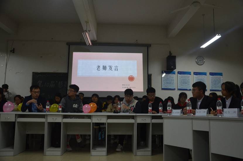 為展現(xiàn)新一代大學(xué)生的蓬勃朝氣,培養(yǎng)學(xué)生辯證看待問題、創(chuàng)新思維的能力,經(jīng)濟(jì)管理學(xué)院于10月14日晚在教5-506舉行了“哲思杯”辯論賽的決賽。出席本次比賽的有團(tuán)委書記許金鑫老師、科協(xié)指導(dǎo)老師王軒老師,以及其他學(xué)生評(píng)委,本次比賽的主持人由學(xué)生會(huì)干事王傳宇擔(dān)任。