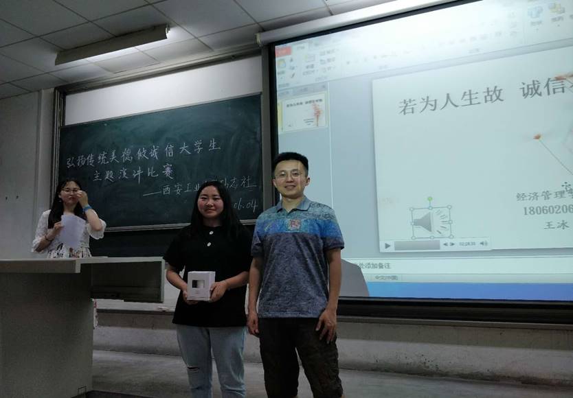 通過此次活動,促使學(xué)生對誠信有更深的了解,喚醒學(xué)生自我教育和自我完善意識,自覺加強(qiáng)誠信建設(shè)。誠實守信,從我做起,相信西安工業(yè)大學(xué)學(xué)生都能嚴(yán)格的要求自己,做一個誠信合格的大學(xué)生,營造一個誠信和諧的校園氛圍。