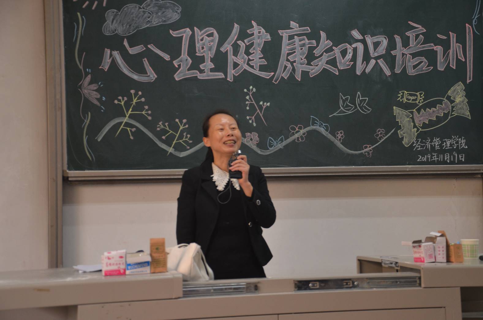 為引導(dǎo)我院學(xué)生關(guān)注自身心理健康及成長,經(jīng)濟管理學(xué)院于2019年11月19日在教2-110開展此次心理健康知識培訓(xùn)。本次培訓(xùn)老師為學(xué)生心理發(fā)展中心林曉萍老師,蒞臨現(xiàn)場的嘉賓有團委書記許金鑫老師、19級輔導(dǎo)員邵欣老師以及學(xué)生會主席劉倍含,共計一百五十多名同學(xué)參與此次活動。
