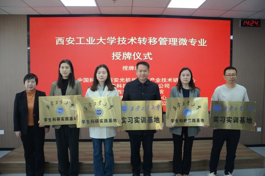 王育曉院長代表學(xué)校向合作單位授予“西安工業(yè)大學(xué)學(xué)生科研實(shí)踐基地”與“西安工業(yè)大學(xué)實(shí)習(xí)實(shí)訓(xùn)基地”牌匾。隨后,毛永剛、甘霖熙、胡濱、李臣、王瑾五位行業(yè)專家受聘為微專業(yè)校外導(dǎo)師,并現(xiàn)場(chǎng)頒發(fā)聘任證書。