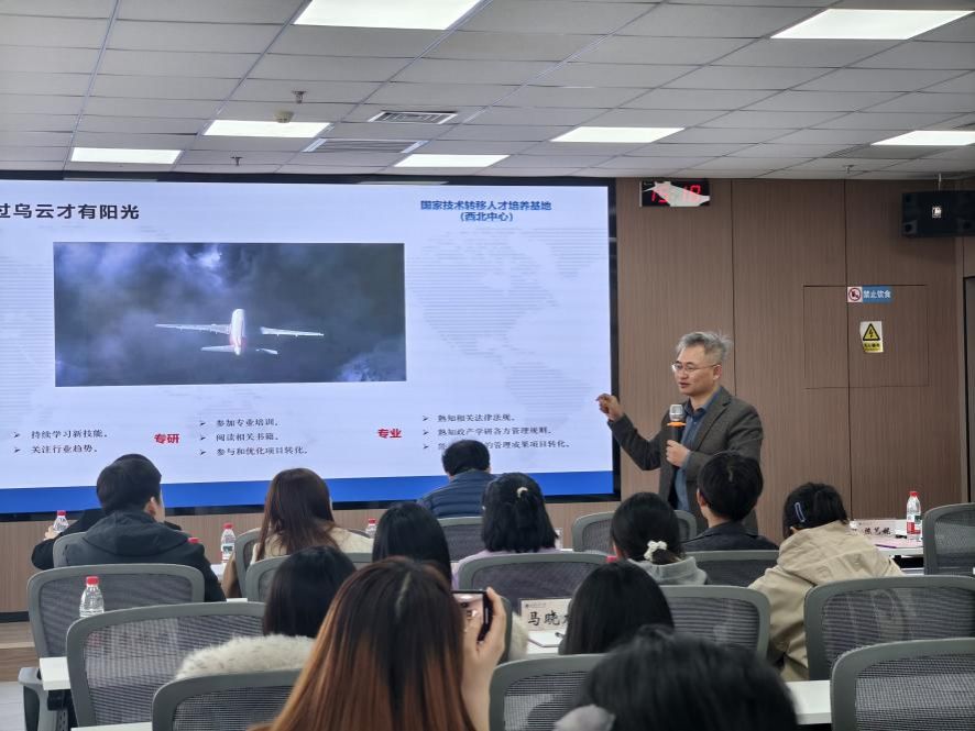 在專題報(bào)告環(huán)節(jié),西安技術(shù)經(jīng)理人協(xié)會(huì)秘書長毛永剛以“技術(shù)轉(zhuǎn)移領(lǐng)域核心人才需求”為題,結(jié)合豐富案例,分析了當(dāng)前行業(yè)對(duì)專業(yè)人才的素質(zhì)要求與發(fā)展路徑,為同學(xué)們指明了學(xué)習(xí)方向與職業(yè)前景。