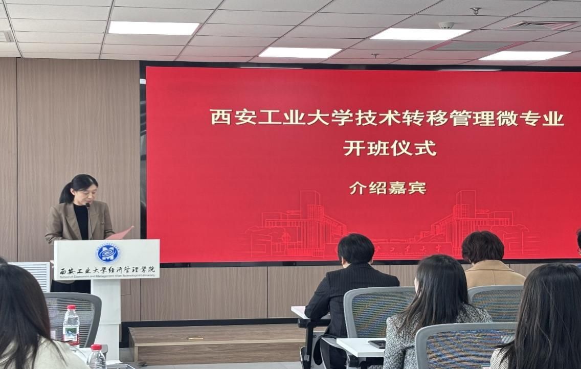 2025年11月30日下午,我院技術(shù)轉(zhuǎn)移管理微專業(yè)開班儀式在我校未央校區(qū)教9-528隆重舉行。我院院長王育曉、副院長田杰、副書記張旭和來自陜西省科技資源統(tǒng)籌中心、西安技術(shù)經(jīng)理人協(xié)會(huì)、陜西空天動(dòng)力研究院、西安科技大市場(chǎng)、長安先導(dǎo)產(chǎn)業(yè)創(chuàng)新中心等單位的嘉賓共同出席了本次儀式,活動(dòng)由副院長田杰主持。