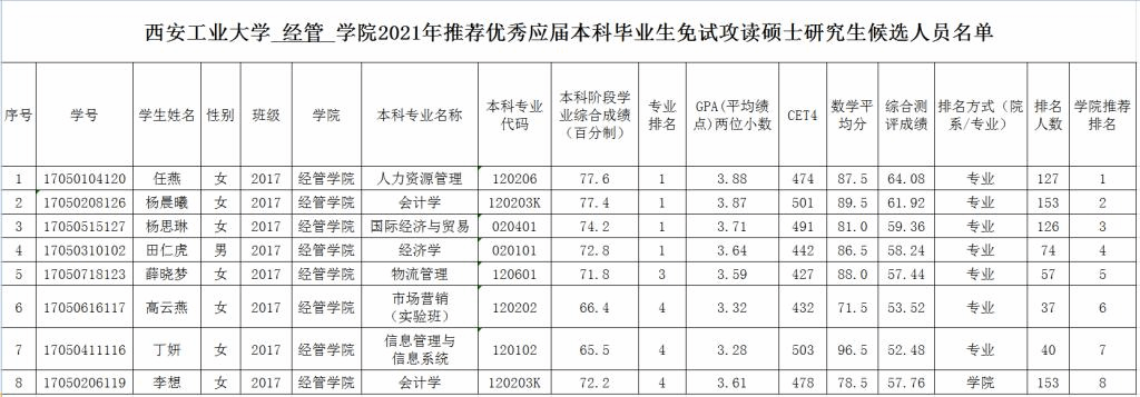 西安工業(yè)大學(xué)經(jīng)管學(xué)院2021年推薦優(yōu)秀應(yīng)屆本科畢業(yè)生免試攻讀