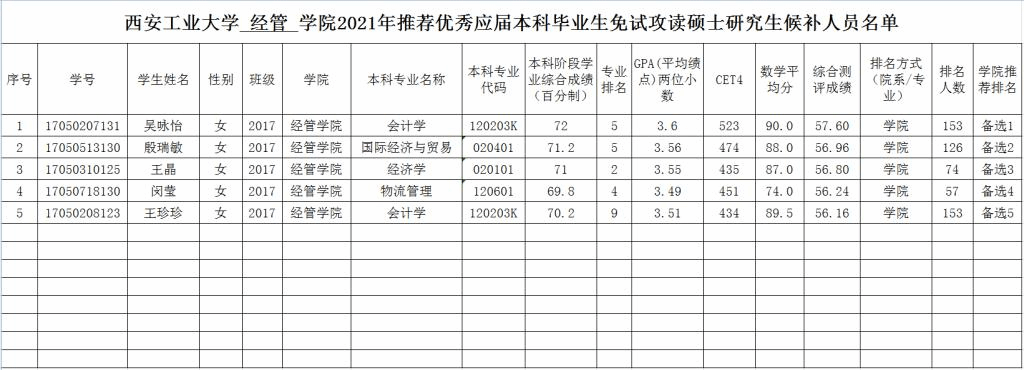 西安工業(yè)大學(xué) 經(jīng)管 學(xué)院2021年推薦優(yōu)秀應(yīng)屆本科畢業(yè)生免試攻讀