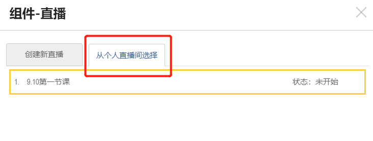 點(diǎn)擊“更多”,選擇“直播”,“從個(gè)人直播間選擇”,引用之前建好的直播,然后保存頁(yè)面。