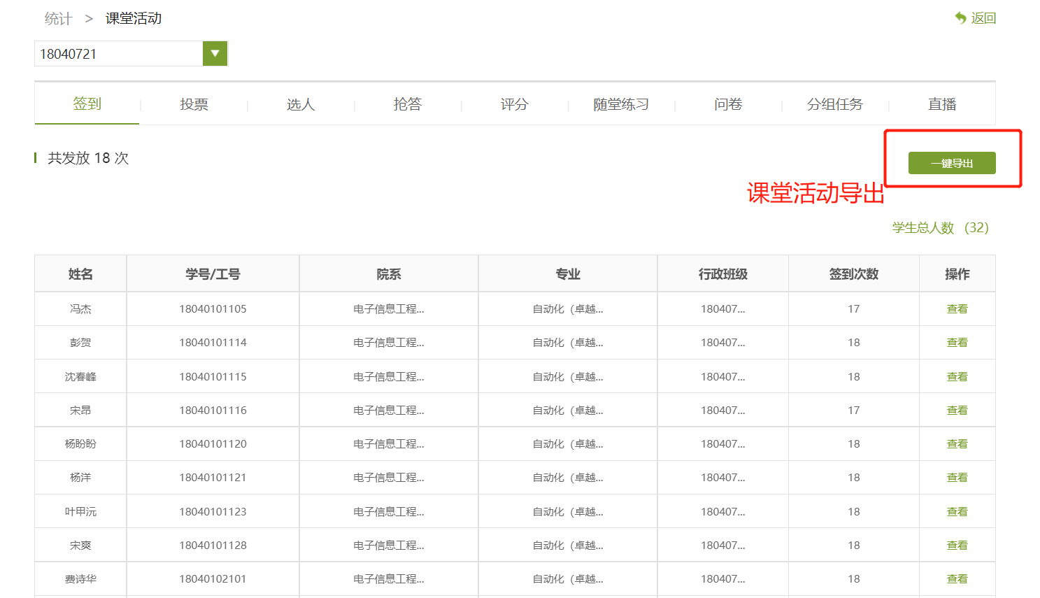 2)在線教學(xué)數(shù)據(jù)統(tǒng)計結(jié)果查看與導(dǎo)出。
