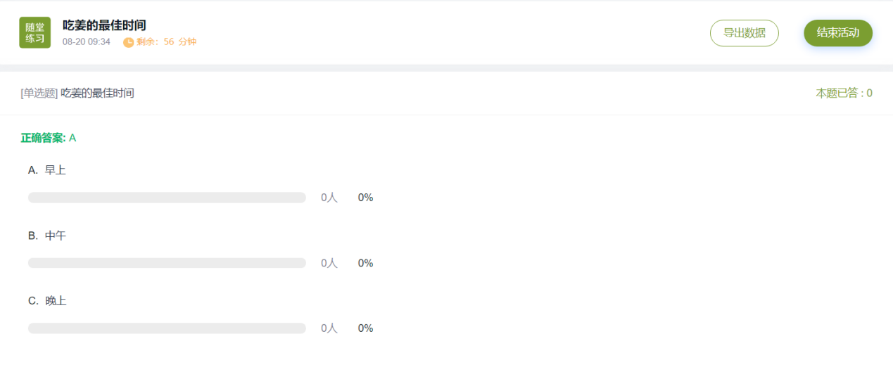點(diǎn)開正在進(jìn)行的活動,可以看到學(xué)生作答結(jié)果,繼而做出活動點(diǎn)評。