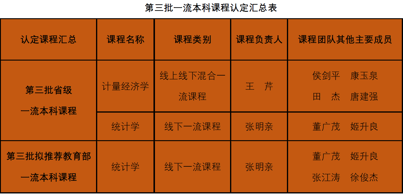 一直以來,經(jīng)濟(jì)管理學(xué)院緊抓課程建設(shè)主線,對標(biāo)教育部要求,樹立課程建設(shè)新理念,推進(jìn)課程改革創(chuàng)新,前期申報(bào)課程組經(jīng)過多次專家組認(rèn)真細(xì)致的評審打磨,依據(jù)專家組給予的意見和建議進(jìn)行認(rèn)真修改,持續(xù)在一流本科課程建設(shè)上下功夫,提升一流課程的使用效果。通過教師們的不懈努力,我院張明親團(tuán)隊(duì)《統(tǒng)計(jì)學(xué)》(線下一流課程),王芹團(tuán)隊(duì)《計(jì)量經(jīng)濟(jì)學(xué)》(線上線下混合一流課程),獲批2023年第三批認(rèn)定省級一流本科課程。《統(tǒng)計(jì)學(xué)》課程被推薦至教育部參評國家級一流本科課程。