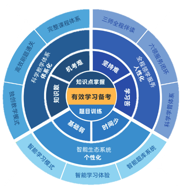 針對(duì)考生基礎(chǔ)弱、備考時(shí)間少、內(nèi)容雜等學(xué)習(xí)難題,提供一套智適應(yīng)學(xué)習(xí)備考解決方案,讓Pass觸手可及!