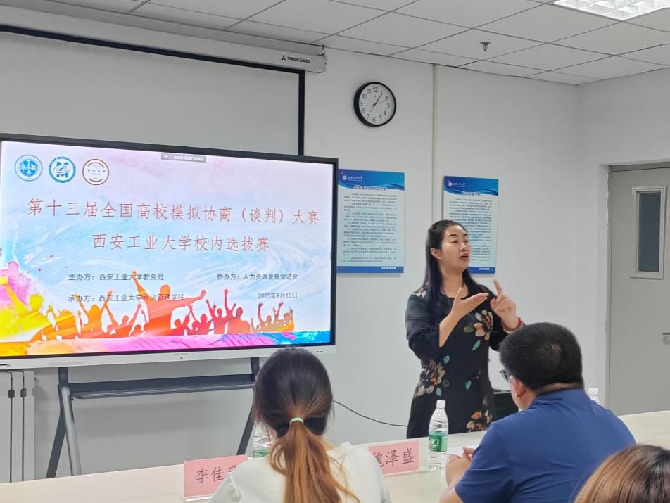 由西安工業(yè)大學(xué)本科生院(教務(wù)處)主辦,經(jīng)濟(jì)管理學(xué)院承辦,人力資源發(fā)展促進(jìn)會(huì)協(xié)辦的第十三屆全國(guó)高校模擬集體協(xié)商(談判)大賽校內(nèi)選拔賽于2024年9月15日至9月18日期間圓滿完成。