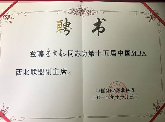 隨后,中國MBA西北聯(lián)盟進行了第十五屆聯(lián)盟和第三屆聯(lián)盟理事會換屆儀式,我校MBA聯(lián)合會主席李寅亮被聘為第十五屆中國MBA西北聯(lián)盟副主席。