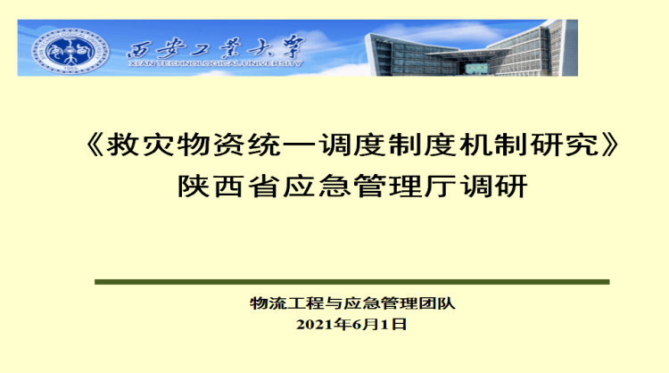 2021年6月1日,經(jīng)濟(jì)管理學(xué)院蘇兵教授率物流工程與應(yīng)急管理團(tuán)隊(duì)赴陜西省應(yīng)急管理廳調(diào)研,物流管理專業(yè)負(fù)責(zé)人徐陽和部分研究生參加。