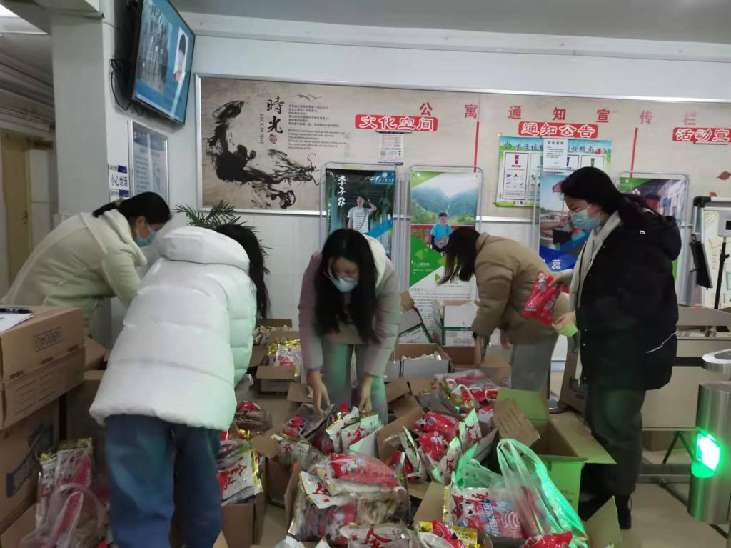 晚上6:30,經(jīng)管學院全體學工干部到二公寓樓下為學生搬運了慰問禮品,二公寓樓上的學生黨員聞訊主動到樓下幫忙,隨后組織學生有序領(lǐng)取,共為343個宿舍發(fā)放了水果、瓜子和糖果等過節(jié)禮品。