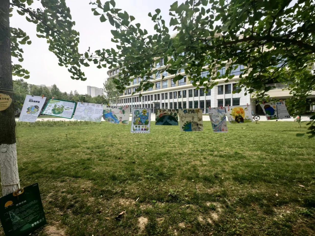 本次活動通過線上報名,線下提交作品的形式展開。同學們發(fā)揮想象創(chuàng)作出符合主題、情感豐富的作品。工作人員于21日在教9-615進行作品收集。緊接著,評委們綜合考慮了主題、構(gòu)思、繪畫技巧等方面,評選出優(yōu)秀作品并為創(chuàng)作者發(fā)放了獎品。22日下午,工作人員將優(yōu)秀作品張貼在博苑廣場教九樓下進行展示,青青綠樹與充滿綠色生機的圖畫相得益彰,充分展示了青年大學生的生態(tài)環(huán)保意識。