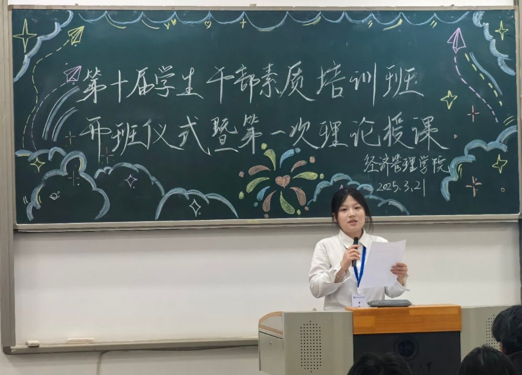 3月21日晚,經濟管理學院于教1-101舉辦了第十屆學生骨干素質培訓班開班儀式暨第一次理論授課。出席本次大會的有團學組織全體成員以及受邀講解各專業(yè)分流的學長學姐。本次大會由張曉燕主持。