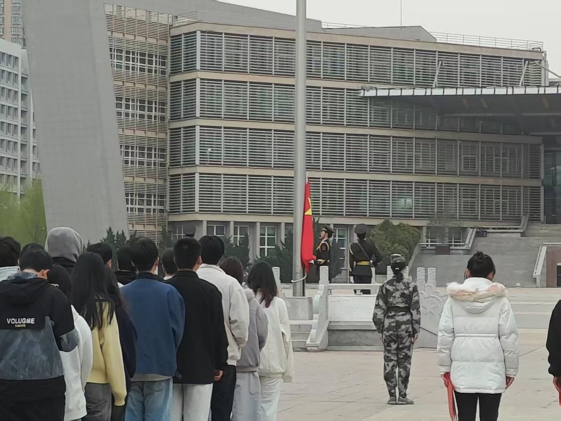 同學(xué)們有序列隊(duì),等待儀式進(jìn)行。七時(shí)整,國(guó)旗護(hù)衛(wèi)隊(duì)邁著整齊劃一的步伐護(hù)送國(guó)旗走向旗桿。在激昂雄壯的國(guó)歌聲中,五星紅旗緩緩升起,全體師生莊嚴(yán)肅立,面向國(guó)旗行注目禮。這一刻,師生們的目光追隨著國(guó)旗,眼神中滿是對(duì)祖國(guó)的熱愛。