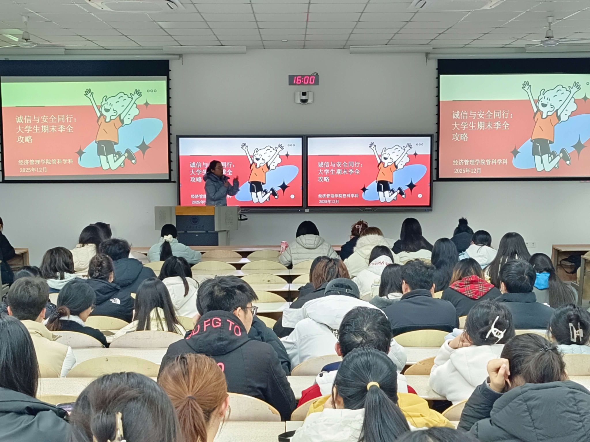 為強(qiáng)化學(xué)生考風(fēng)考紀(jì)意識(shí),筑牢寒假安全防線,12月9日下午,經(jīng)濟(jì)管理學(xué)院管科學(xué)科在教2-104召開 “誠(chéng)信與安全同行” 期末季主題年級(jí)大會(huì),全體學(xué)科學(xué)生參會(huì)。大會(huì)圍繞考風(fēng)考紀(jì)動(dòng)員、四六級(jí)考試規(guī)范、寒假安全防護(hù)及責(zé)任承諾四大板塊,為同學(xué)們送上期末季 “全攻略”。
