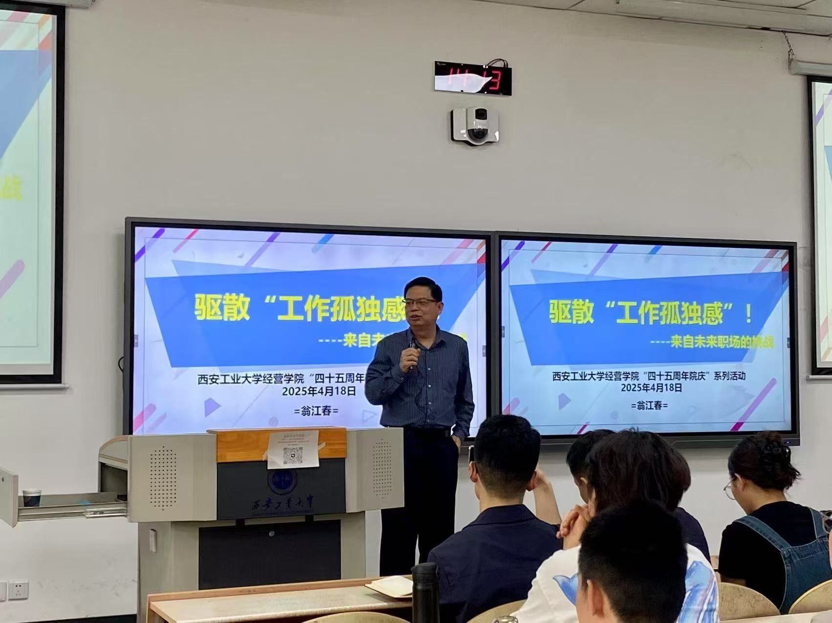 趙公民、翁江春、馬寶龍分別做題為《如何把握一門課,講好一堂課》《驅(qū)散“工作孤獨感”,來自未來職場的挑戰(zhàn)》《科學(xué)管理體系的范式與迭代——學(xué)科知識與理論研究的價值》的報告,內(nèi)容涵蓋教育教學(xué)、企業(yè)經(jīng)營、科學(xué)研究等方面。在互動環(huán)節(jié)中,師生們踴躍提問,與專家學(xué)者展開熱烈討論。